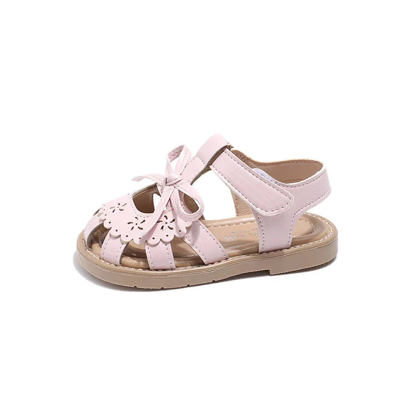Sandália Infantil com Laço Antiderrapante Solado Macio Bege Lenogue